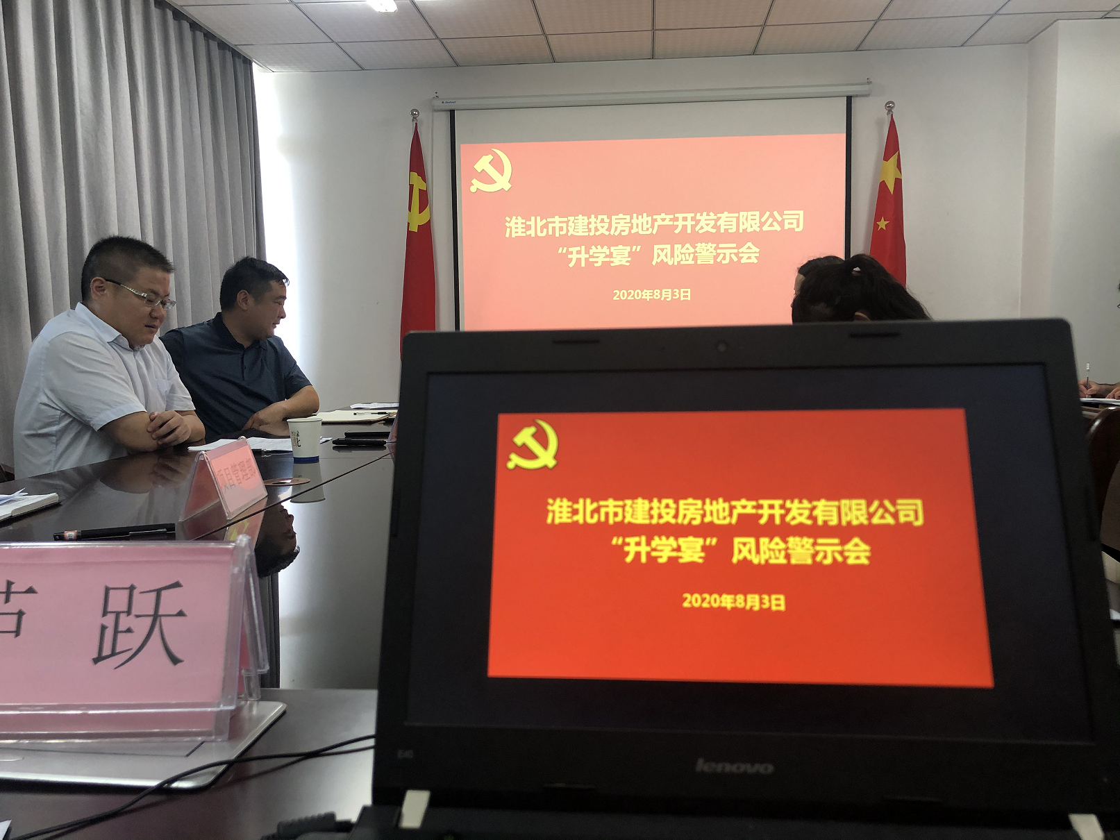 為狠剎“升學(xué)宴”等不正之風(fēng),8月3日,房地產(chǎn)公司組織召開“升學(xué)宴”風(fēng)險(xiǎn)警示會(huì),堅(jiān)持把紀(jì)律和規(guī)矩挺在前面,劃紅線、敲警鐘,提前“亮紅燈”給“升學(xué)宴”去火降溫。