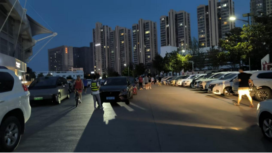 城泊公司針對(duì)體育中心周邊車流、人流集中的特點(diǎn),提前制定保障方案,增派經(jīng)驗(yàn)豐富的員工負(fù)責(zé)現(xiàn)場(chǎng)值守?;顒?dòng)從傍晚7點(diǎn)開(kāi)始,身著制服的城泊員工在停車場(chǎng)入口、內(nèi)部道路交叉口、車位密集區(qū)等關(guān)鍵點(diǎn)位開(kāi)展引導(dǎo)工作,成為夜市里一道忙碌而溫暖的風(fēng)景線。