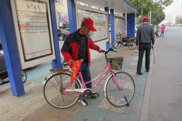 在鷹山路,志愿者拿著小紅旗站在路口,維持交通志愿,勸導(dǎo)行人文明過馬路;在公交站臺(tái),志愿者一邊緊張有序的組織乘客排隊(duì)上車,一邊把幾輛借用站臺(tái)做“車棚”的自行車、助力車推到合適的位置;在學(xué)校門口,志愿者撿起地上的落葉和一位行人隨手丟下的煙頭,志愿者無聲的舉動(dòng)讓這位行人紅著臉加快了行走的步伐…