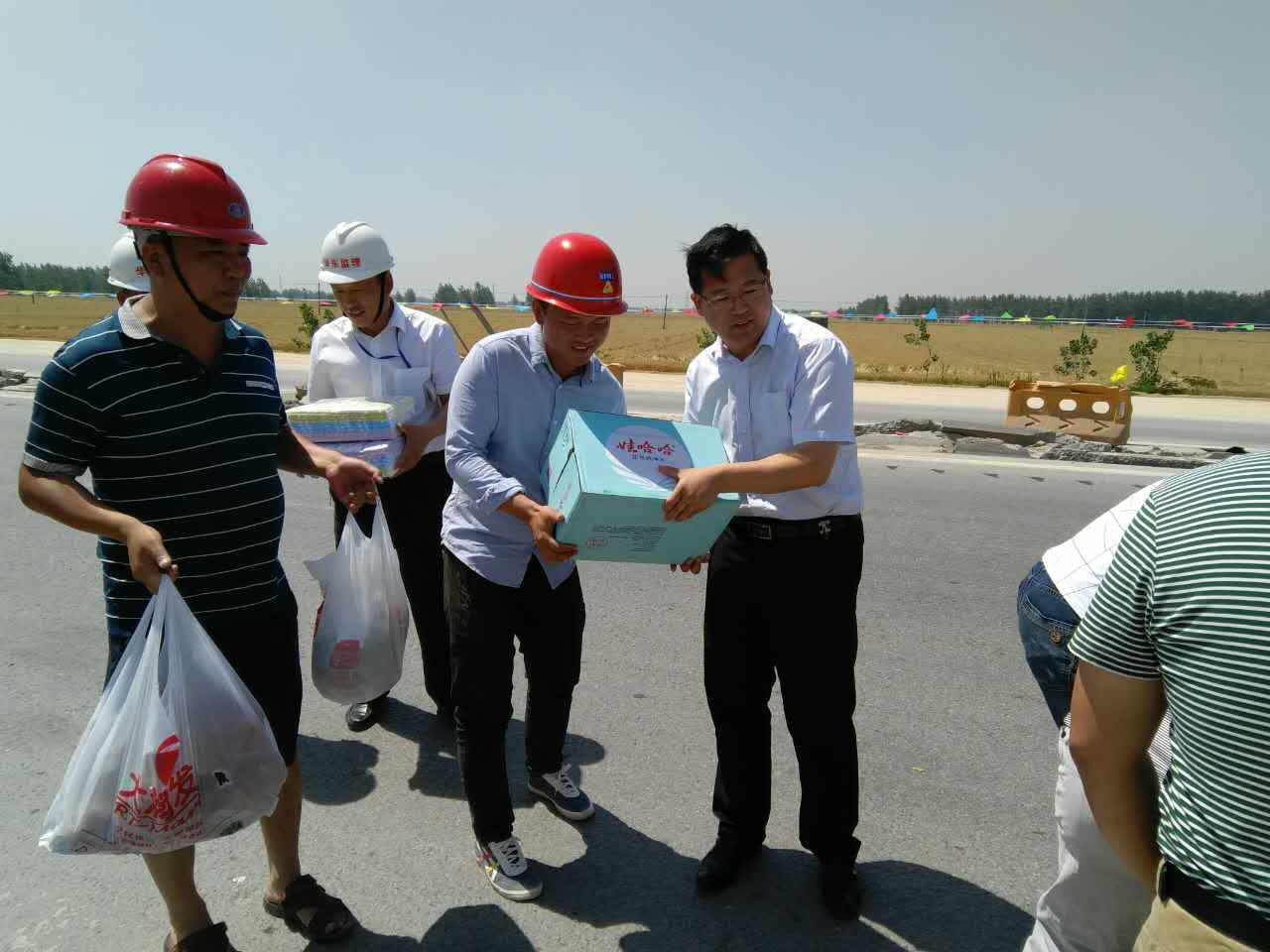 驕陽似火,酷暑難耐。為感謝激勵奮斗在烈日中的一線員工,2017年5月27日,集團(tuán)黨委委員、副總經(jīng)理、交投公司總經(jīng)理張立哲帶領(lǐng)交投公司黨支部一行先后走訪S202收費站項目部和高樓山石料廠項目部門,看望慰問堅守在高溫烈日下的一線員工。