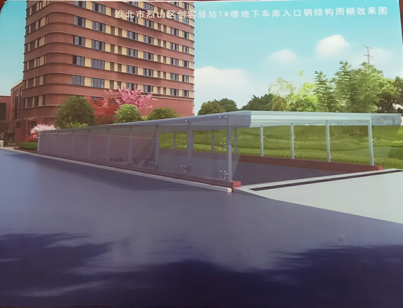 創(chuàng)客驛站1#樓地下車庫(kù)入口鋼結(jié)構(gòu)雨棚效果圖